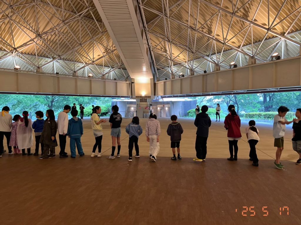 5月17日、爽やかな五月晴れのもとで追跡するゲームをしようとしたら、あいにくの大雨! 今回は雨天決行だったため、雨の日の遊びを楽しみました。 -